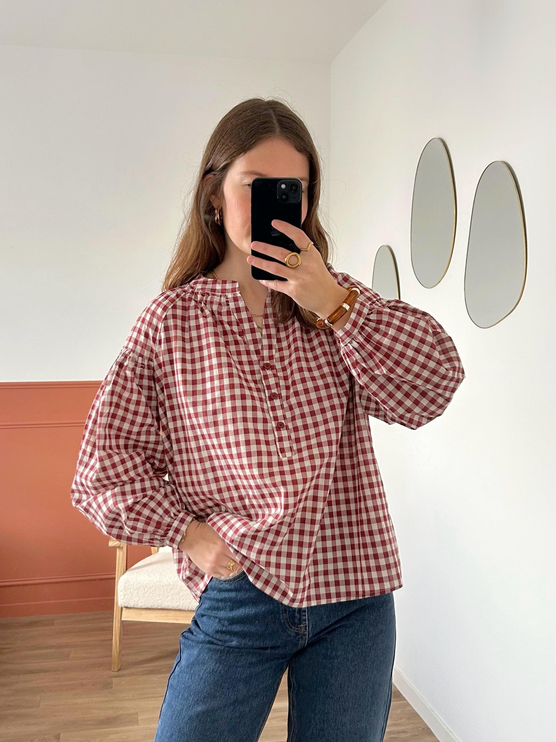 - Blouse à carreaux vichy bordeaux/blanc