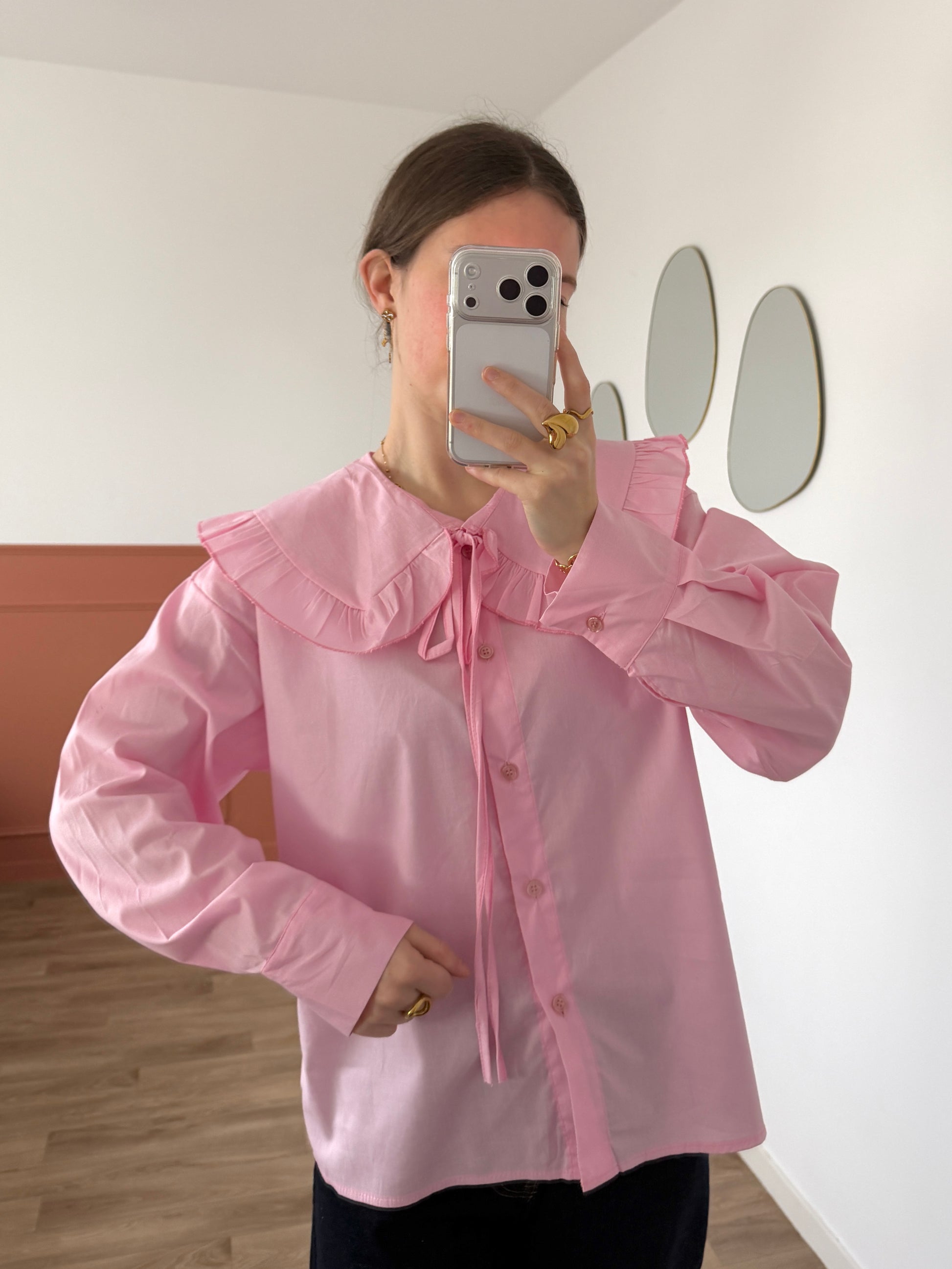 - Chemise rose à grand col claudine