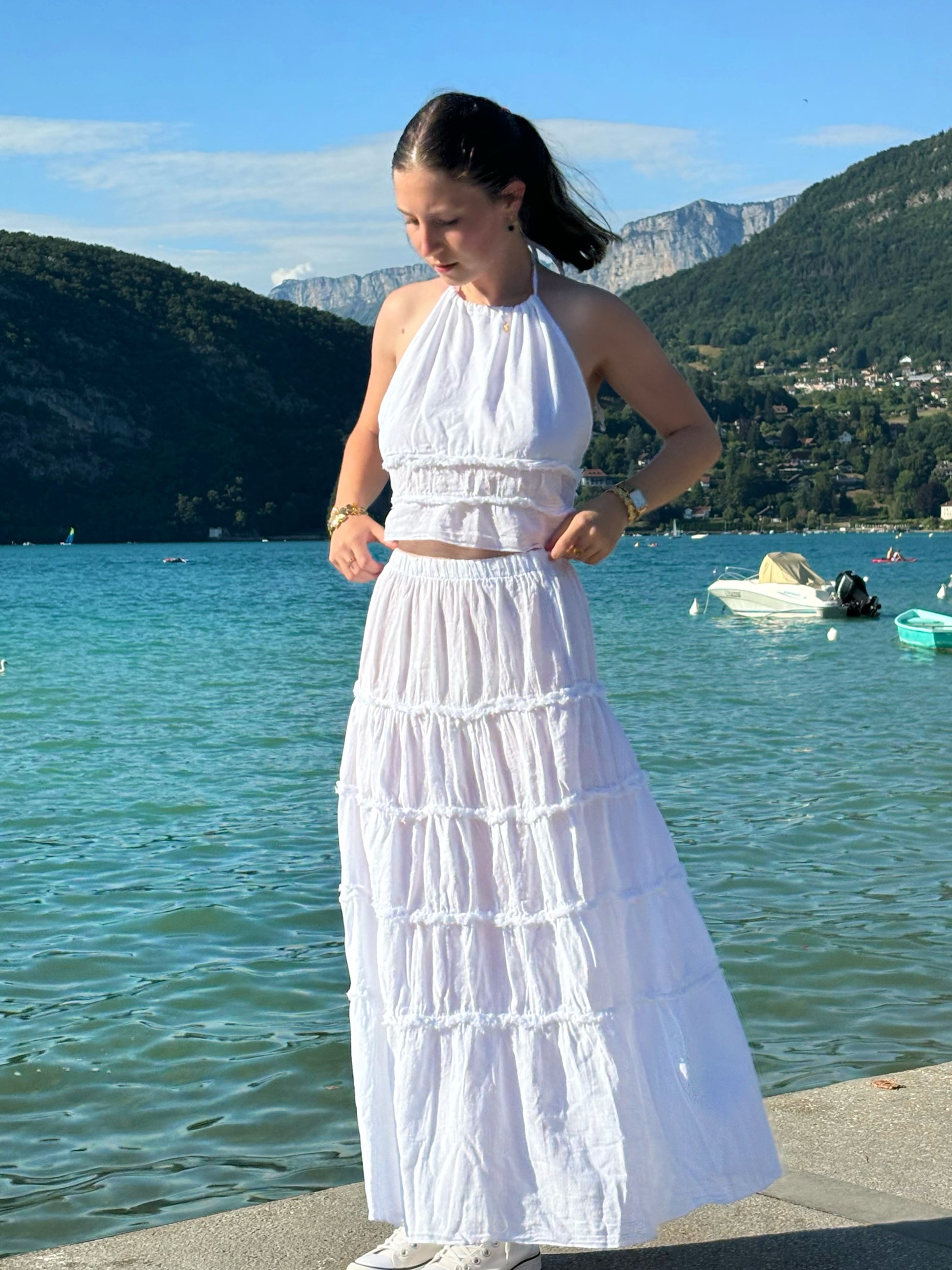 - Le haut s'ajuste grâce aux liens à nouer dans le dos et au niveau de la nuque