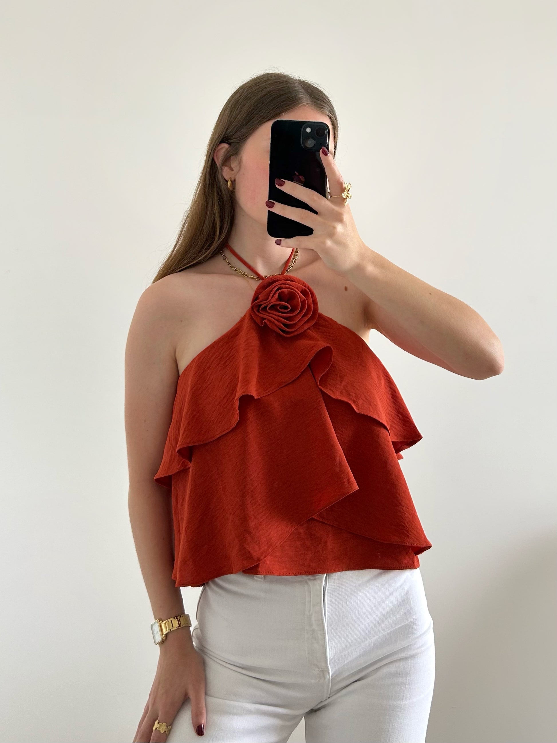 - Top à volants et détail fleur