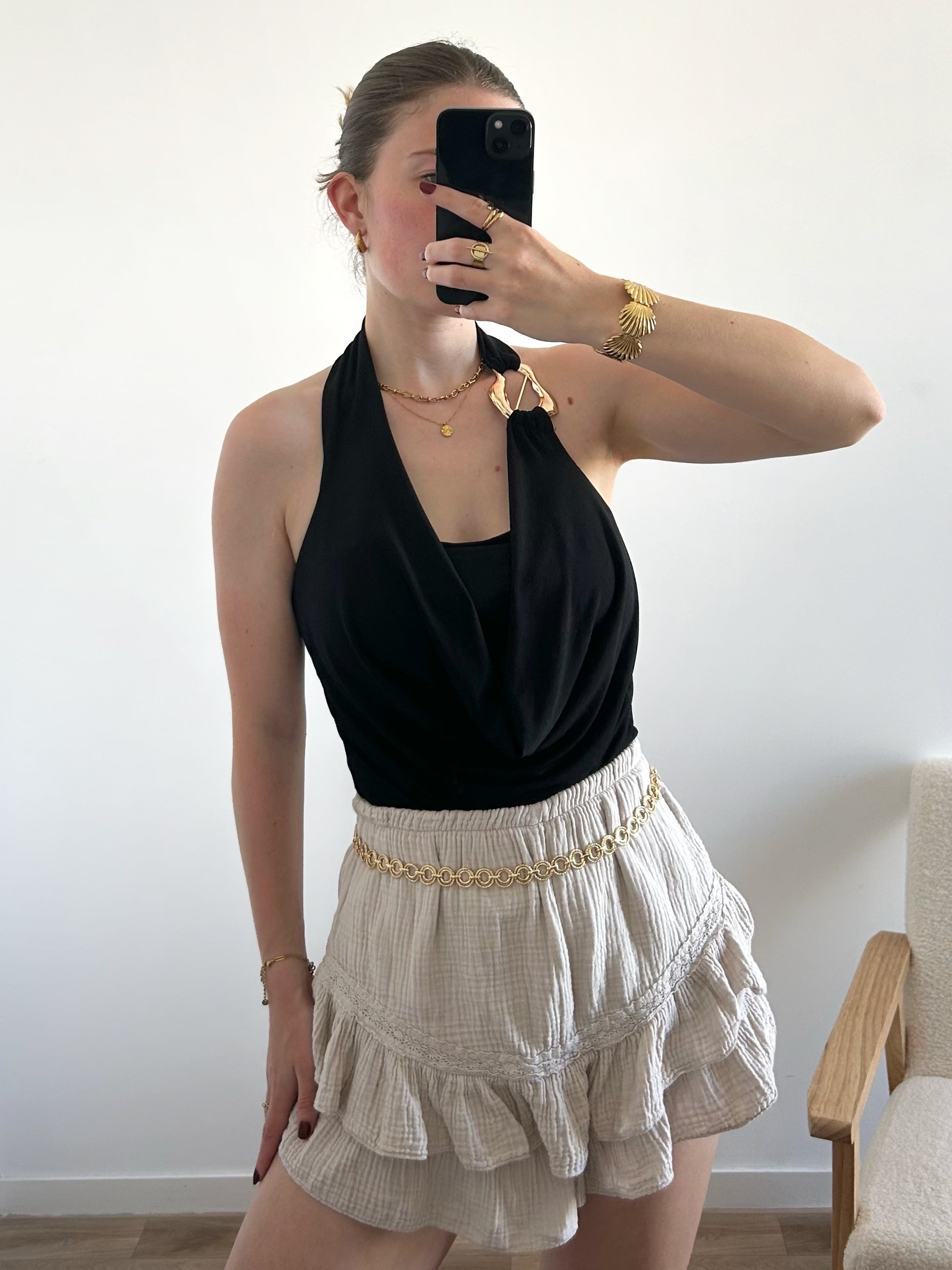 - Le modèle mesure 1m69 et porte une taille unique pour un 36 habituel
